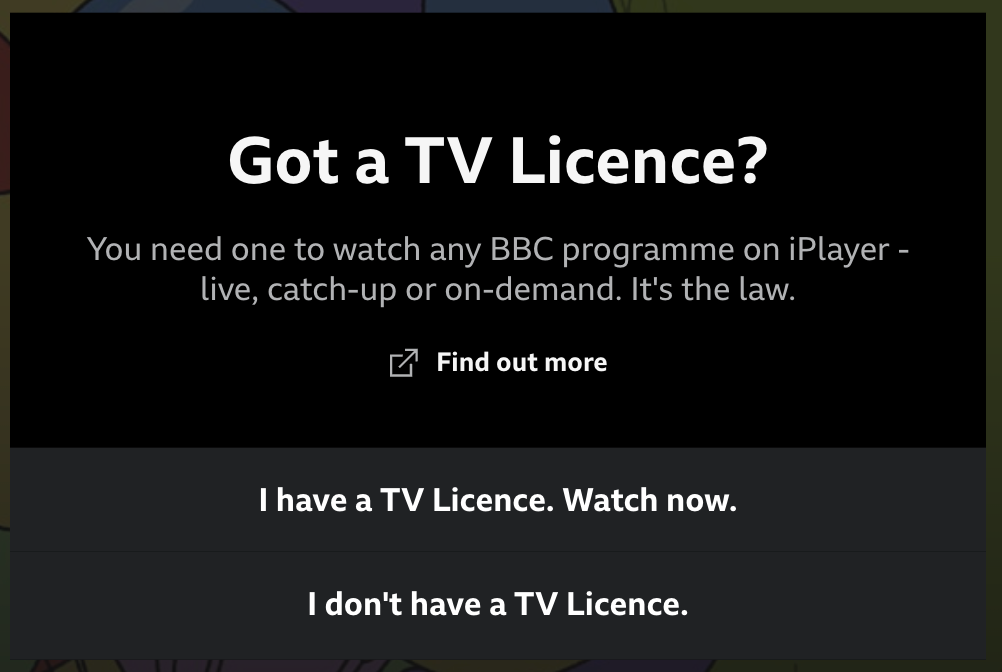 观看需要有英国电视订阅(TV Licence),这东西和日本的 NHK 电视税差不多,要看电视必须买。于是我老老实实承认自己没有,点进去挂英国 VPN 才能知道这玩意一年 175 磅。有意思的是,上面的「I have a TV Licence. Watch Now.」按钮是个君子按钮,也就是说你点了它也不要求登录验证,点一下就可以直接播放了。。。那么就下载下来吧,本地随时看。